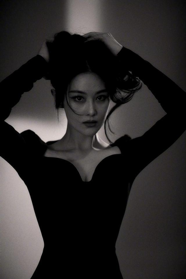 在暗光中又以黑色服饰为色调,这样的手法真的很高明,也拍摄出了张馨予的那种冷艳的美,在冷艳中又有一丝的温情。尤其是那一张微笑的图片,真的很惊艳,也让人感觉到温暖,原来张馨予笑起来会如此的美丽。