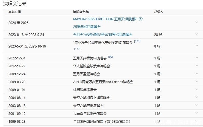 引人关注的是,五月天凭借高达198场的体育场演出记录强势领跑,展现出无可撼动的现场统治力和跨越时代的持久热度。