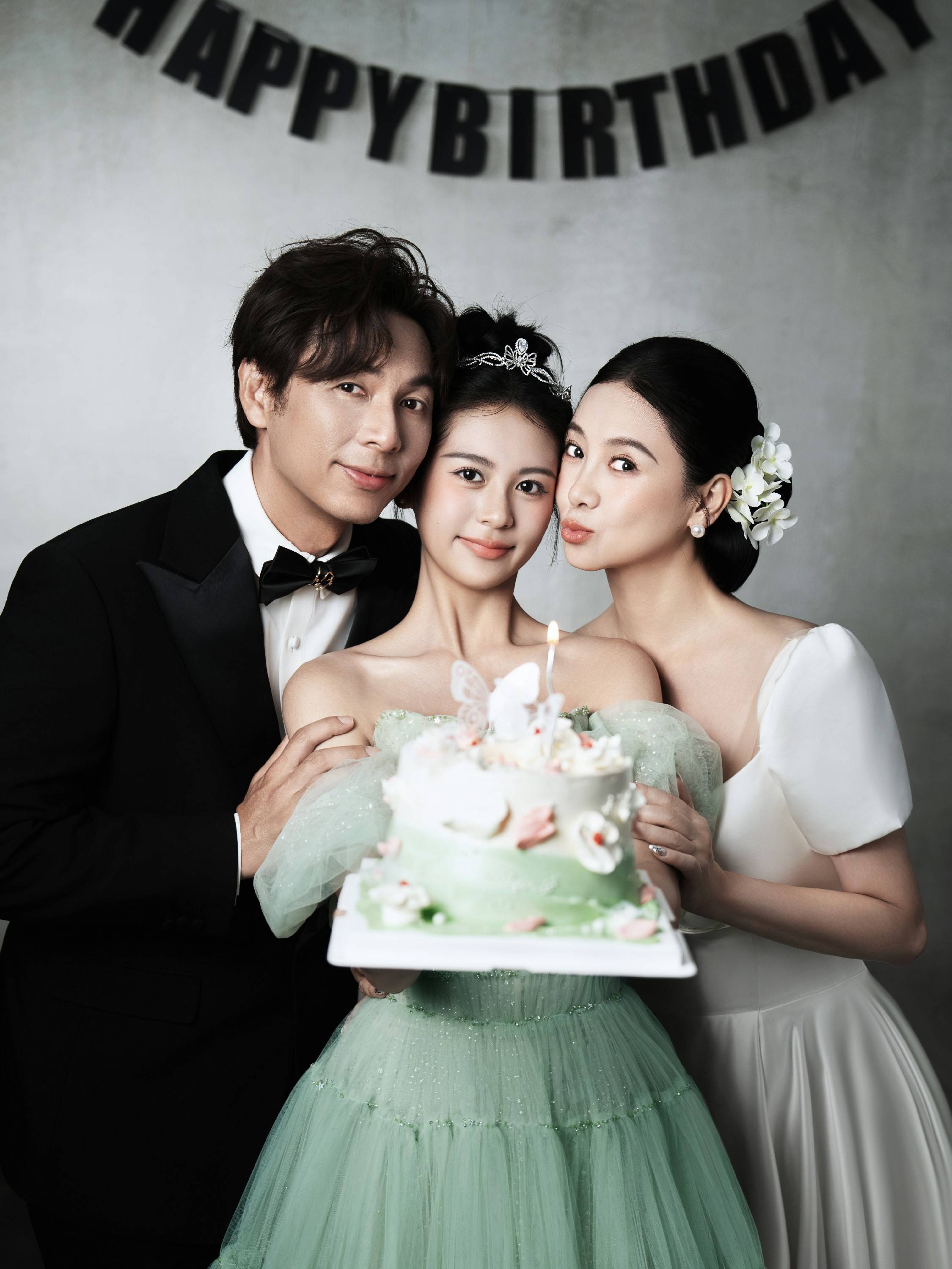 今日发布的生日写真中,水晶以碧色抹胸礼服裙搭配公主髻,手捧心形气球与蛋糕,展露甜美笑容。一家三口的合影更是爱意满满:小水晶轻捧父母脸颊,翁虹与丈夫则比出俏皮爱心手势,冻龄颜值与温馨互动被网友赞为「高颜值幸福范本」。从及笄礼到生日照,无不彰显翁虹和丈夫刘冠廷对女儿精心的养护和优良教导。可见在如此幸福的生活环境中长大的刘莳,开朗的笑容下更是足足的直面生活的勇气和力量。